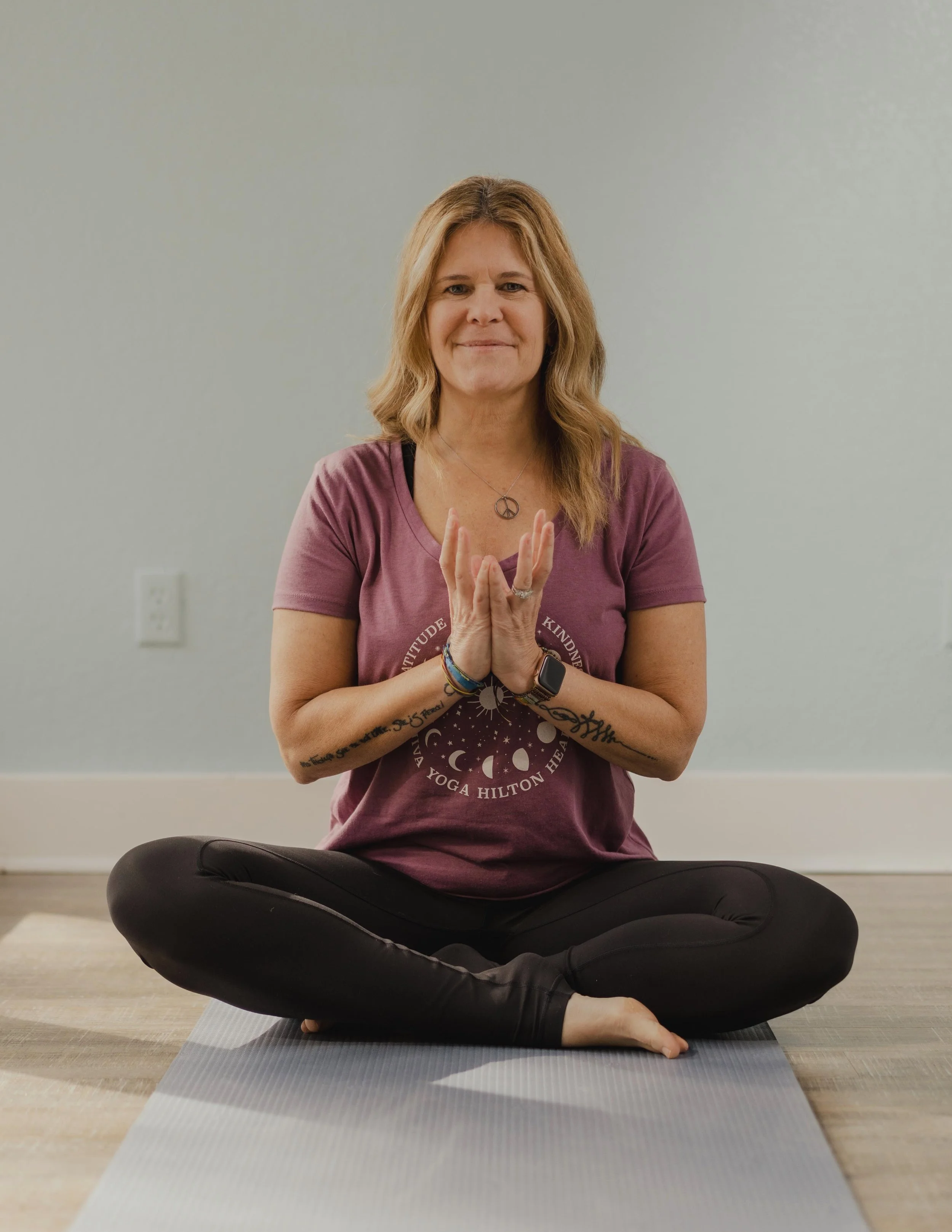 My yoga journey began just over a decade ago when I tried my first class. I did not like it. I thought that I was forever doomed to be inflexible, and that “working out” meant pounding my body into submission. But even though I didn’t love yoga right away, I felt drawn to it. My first teachers exuded such balance, peace, and joy… I wanted that! So I spent the next few years gradually increasing the time I spent on the mat, and gaining insight into my practice and myself – especially my tendency toward negative thinking. When I moved to Hilton Head, yoga became my lifeline; I finally went “all in,” and discovered strength, joy, and transformation.